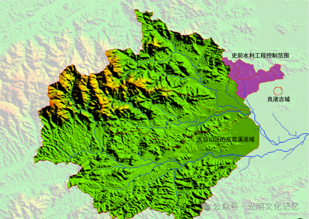 良渚古城与东苕溪水系模拟图