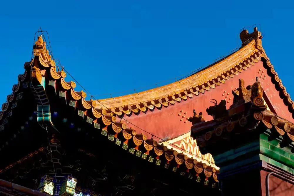 院落宇墙、罗汉墙、跌落墙下碱大部分为大干摆形制,局部有水泥砂浆罩面做假缝;上身为水泥砂浆罩面刷红浆,风化、起砂;黄色琉璃瓦墙帽夹垄灰脱落、掉釉。