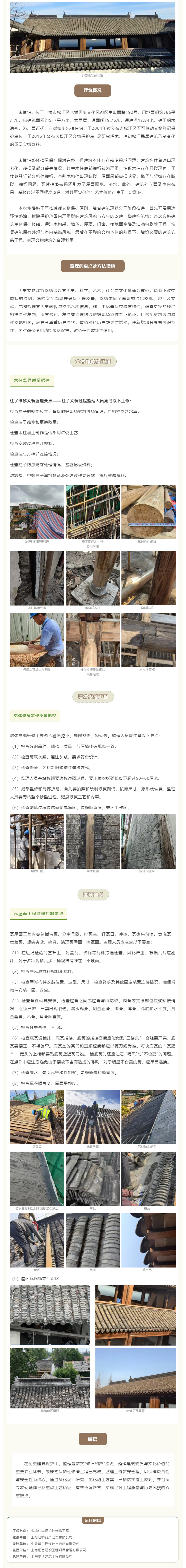 松江朱椿宅修缮工程质量部分监理实践