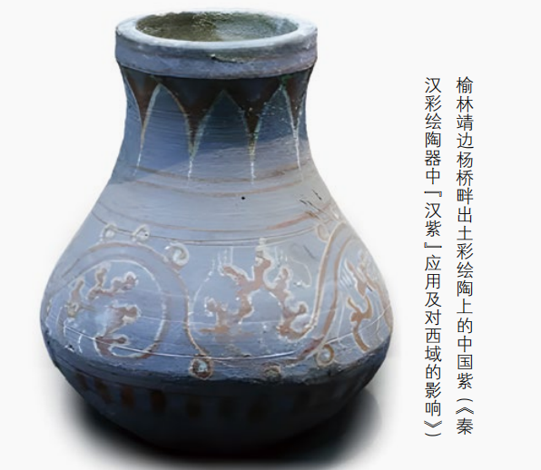 秦汉及以后,中国紫熔块主要作为颜料使用,多见于墓葬壁画、彩绘陶和陶俑上。秦以前也有用作颜料的实例,如西安北郊战国墓出土的铜带钩,铸造时预留了不同形状的凹槽,再用中国紫颜料和胶结材料填充装饰。