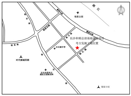 长沙市望城区和顺总部基地建设项目由望城区滨水新城片区S18、S23、S24地块组成,位于长沙市望城区月亮岛街道,西南临王家湾路,东南临银江路,东北临潇湘北路与白石湖公园,西北临银星路。该项目用地S23地块的部分区域涉及到“汉代长沙王陵墓群”建控地带,涉及面积约22632.6平方米。项目用地S23地块西界距离桃花岭汉墓封土中心点直线距离约780米,其东南约1500米处为湖南省级文物保护单位“北津城”。