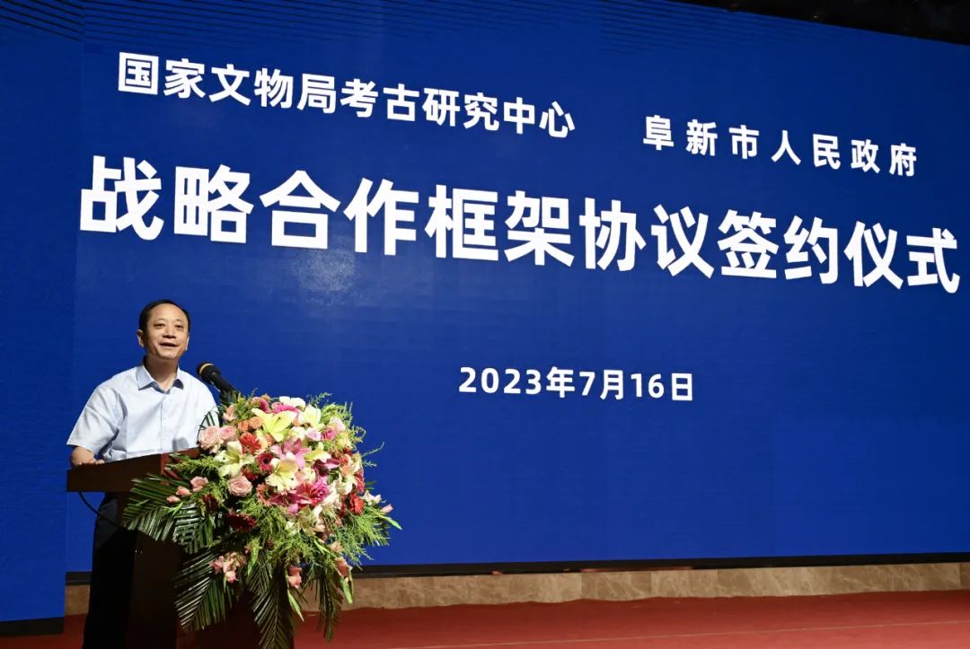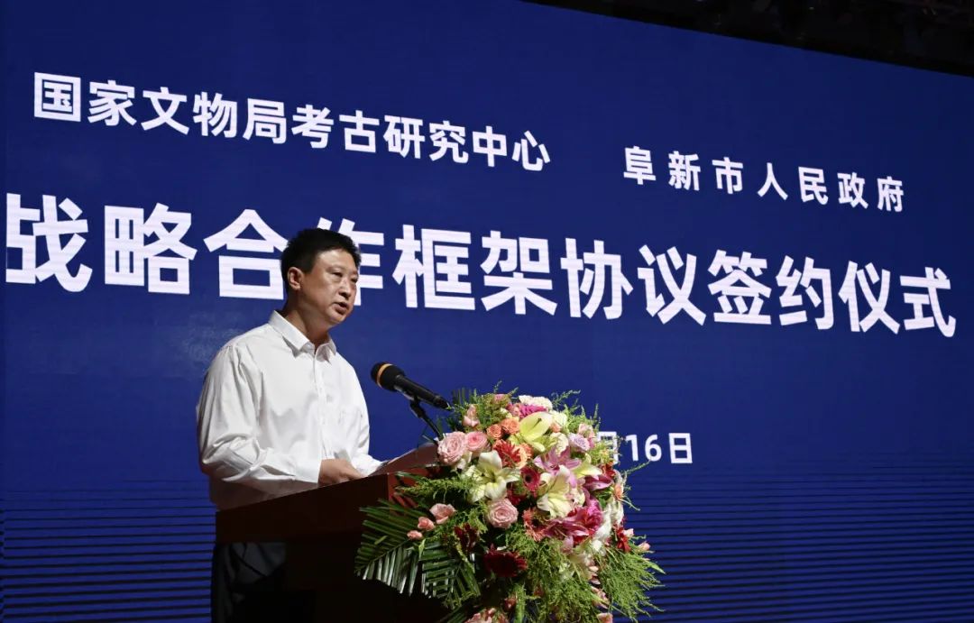 中国考古学会副理事长顾玉才、辽宁省文化和旅游厅副厅长许红英、阜新市委书记胡涛等出席开幕式并致辞。辽宁省委宣传部副部长杨利景、中国考古学会副理事长赵辉、国家文物局考古研究中心主任唐炜出席开幕式。阜新市委常委、宣传部部长王一民主持论坛开幕式。会上,国家文物局考古研究中心与阜新市人民政府签订战略合作框架协议。