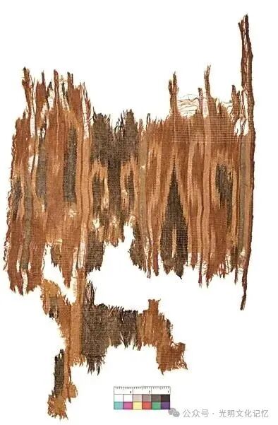 青海热水2018血渭一号墓出土扎经染色织物实物图