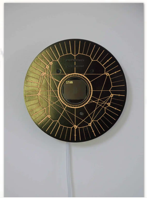 Antinori在本次展览中呈现的《星图 Astral Charts》系列,系统性地揭示了其创作方法。这几件作品有着规整的几何结构,由定制电路板、电子元件组成,仿佛正在运行中的精密仪器。然而,真正引发观众“错位感”的,是作品所调用的知识体系——金融占星学。