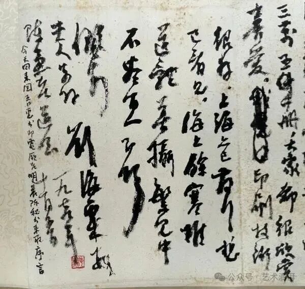 海老晚年的经历与苦难正是人生的“淬火”,可以说,若无那些苦难与长期沉寂,恐怕也没有后期山水泼墨泼彩的辉煌,更没有那样一派苍莽雄浑厚重的书法,此一经历,一方面让人想起黄州时期东坡的蜕变,一方面让人忆及司马迁《报任安书》所记的历代名作,大多皆“发愤之所为作也。”